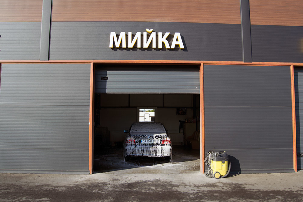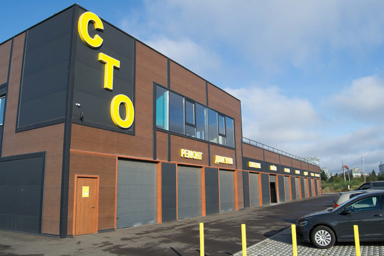 10 боксов (7 подъемников, стенд развал-схождения), шиномонтаж и мойку.